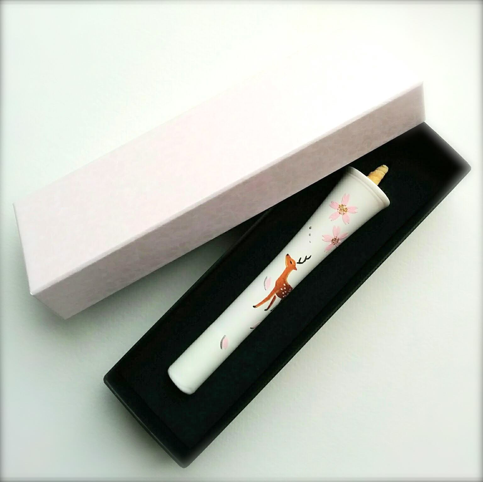 米糠から造られた植物性原料の和ろうそくに手描きで1本1本絵を描いています。