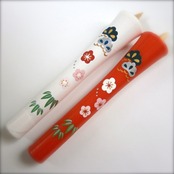 米糠から造られた植物性原料の和ろうそくに手描きで1本1本絵を描いています。
