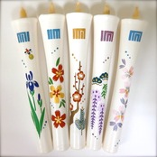 源氏物語の各巻に登場する花や植物などを題材として、和ろうそくに絵柄を描いてみました。